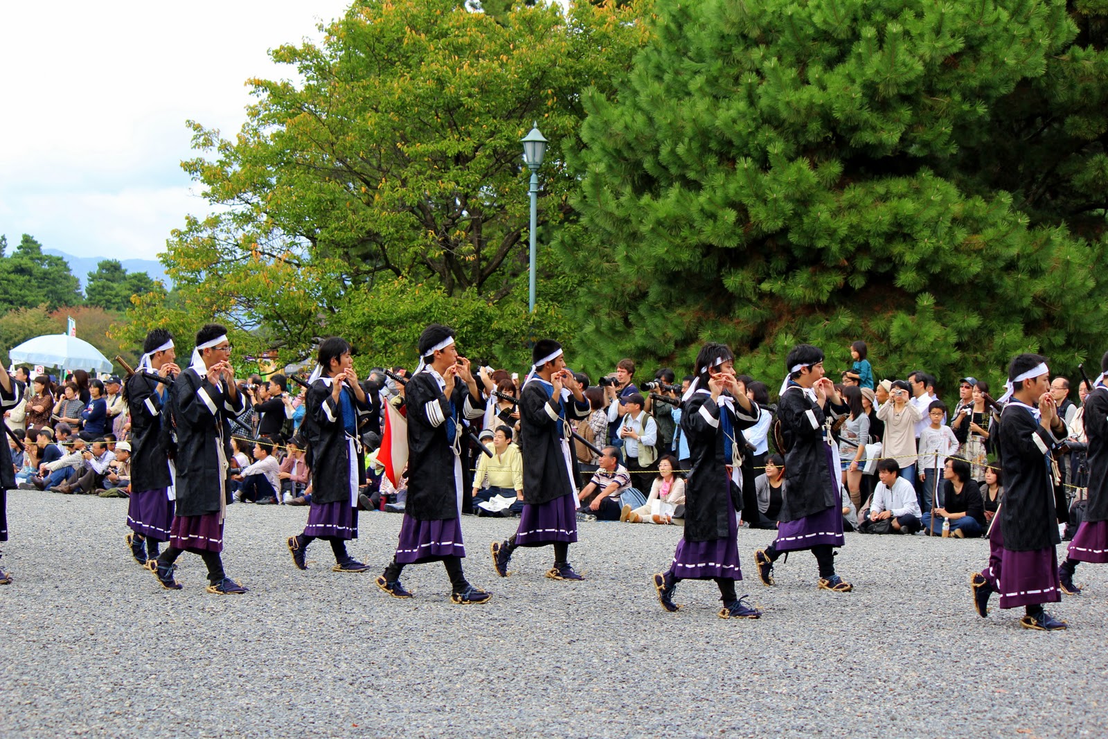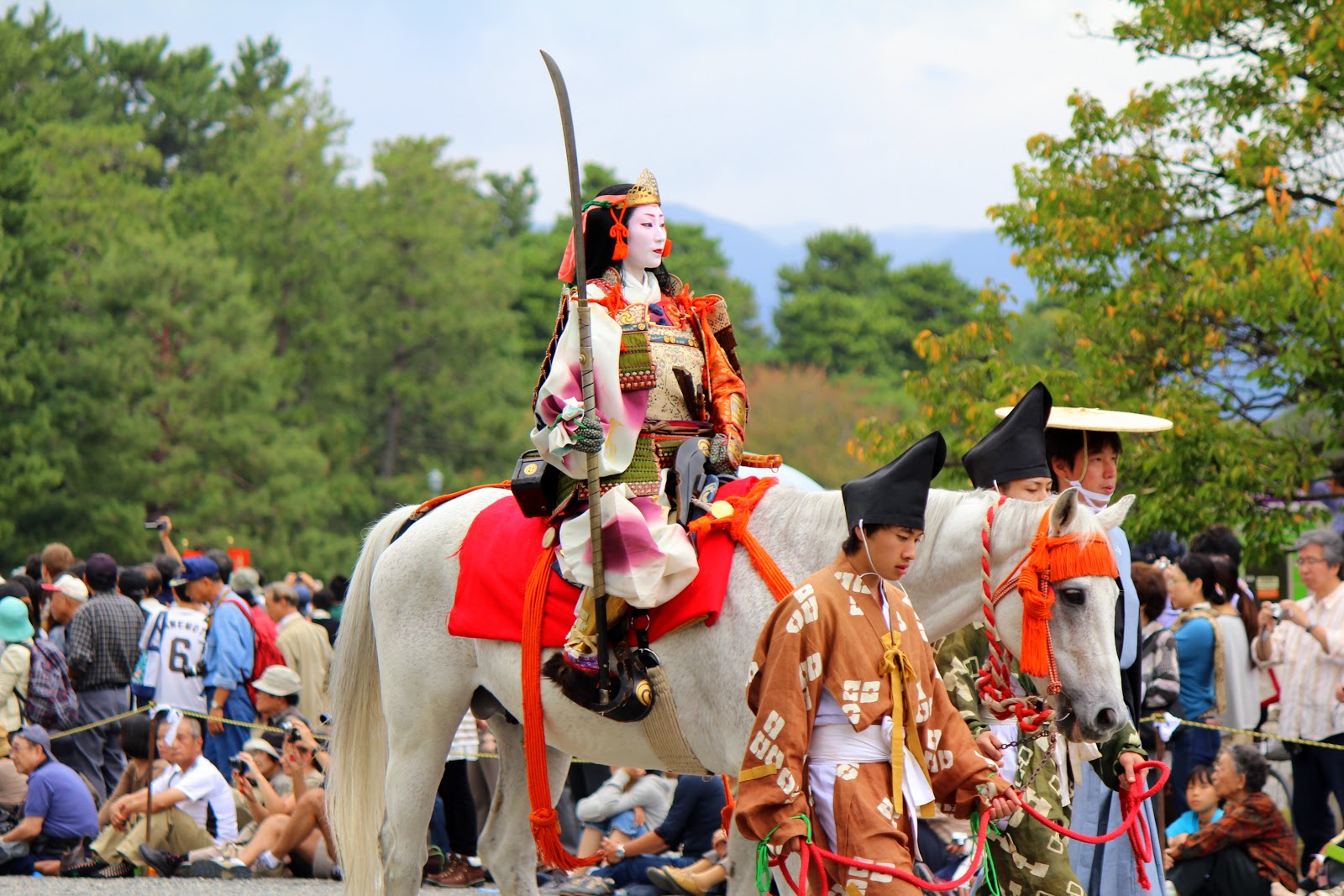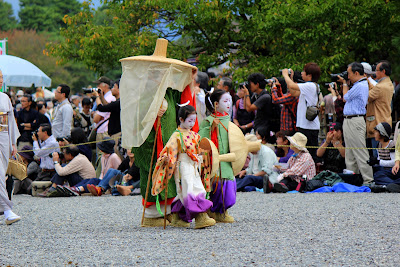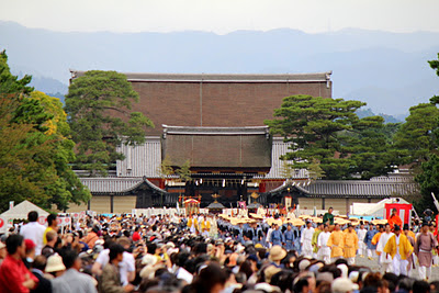 Last Sunday my parents and I went to Kyoto to see Jidai Matsuri(Festival of the Ages), one of Kyoto's three biggest traditional festivals which is held annually on October 22nd.  It was my first time to go to see the festival, despite living in the same Kansai area for over 20 years. This festival consists of a large parade from  Kyoto Imperial Palace and Heian shrine, and the participants of the parade are dressed in accurate costumes representing various periods and characters in Japanese federal history.There are approximately more than 2,000 performers and it takes two hours to watch the entire procession pass by.
