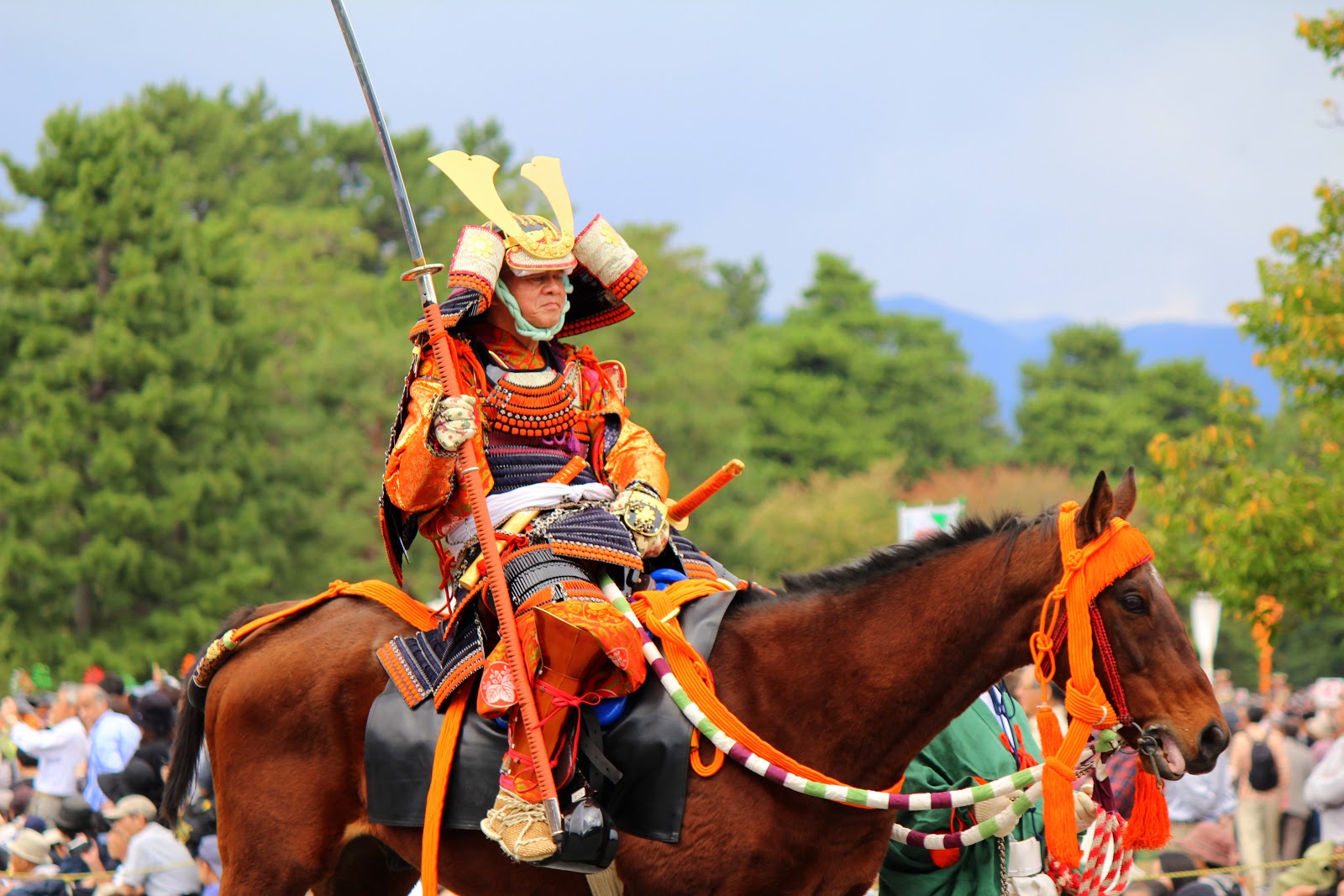 At 12 p.m., the costume procession began from the main gate of the old imperial palace, with a lot of performers dressed in historical costumes from almost every period from Heian Period to Meiji Period. In the procession there were many historically famous samurai and military figures, which was quite interesting to me who specialized in Japanese history in high school.
